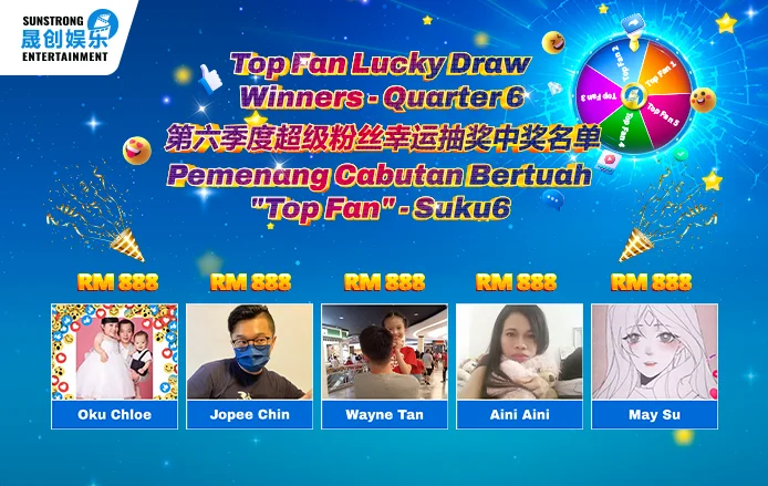 晟创娱乐第六季度超级粉丝幸运抽奖中奖名单公布~