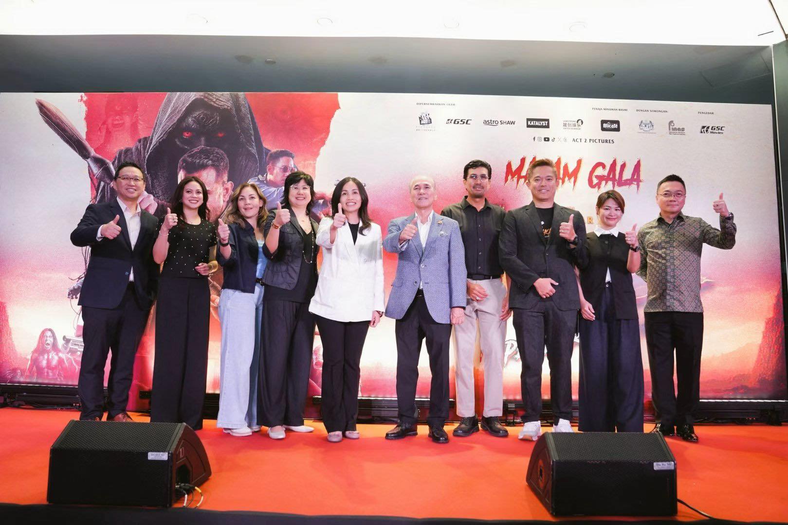 首页 - COMPANY ANNOUNCEMENTS - 《MIKAEL: PEMBURU DUA ALAM》首映礼-图片回顾 《MIKAEL: PEMBURU DUA ALAM》首映礼-图片回顾 由晟创娱乐联合出品的电影《MIKAEL: PEMBURU DUA ALAM》首映礼圆满落幕!晟创娱乐与千年媒体创办人拿督威拉林锦成,与主创团队共同亮相现场。 影片融入了动作、惊悚多种元素,首映礼更有极具氛围感的 “魔灵” 惊悚登场,让来宾近距离感受影片的独特视觉魅力。 影片将于 4 月 2 日正式登陆院线,敬请走进影院,一同体验这场惊心动魄的冒险! 官方预告片: