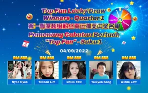 Check out the lucky top fans who have won in our Quarter 1 Top Fans Lucky Draw! Please check if your name is in the list, we will be contacting you as soon as possible to distribute Angpao prize!