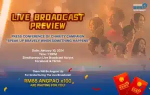 The press conference of SunStrong Entertainment’s Charity Campaign "Speak Up Bravely When Something Happens" will held on January 10, 2024, at 1:10 PM at "A Quiet Place" in Kuala Lumpur. The press conference will be hosted by YB Teo Nie Ching, Deputy Minister of Communications. The founder of SunStrong Entertainment, Mr Jment Lim will be giving a speech at the event, and a panel of creators will share the stories behind the campaign. During that time, there will be a simultaneous live broadcast across the official Facebook & TikTok of SunStrong Entertainment, giving out a total of 100 pieces of RM88 Angpao to fans. Thank you to all fans, let's wait and catch the event together!