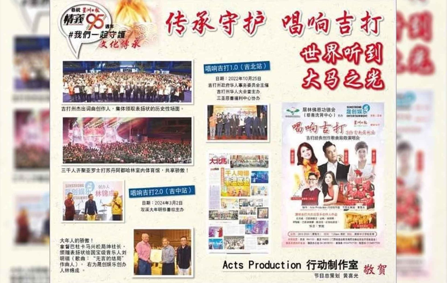 Sin Chew Daily’s report on Shengchuang Entertainment and the “Singing Kedah” event